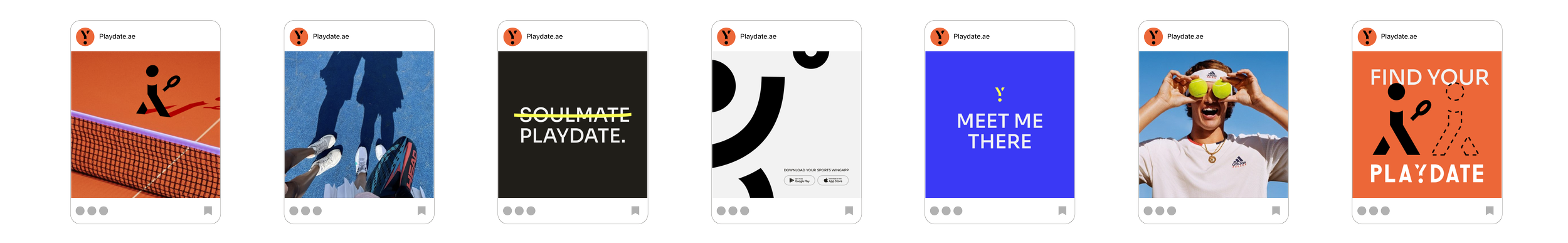 To bring this to life, the identity leans into a high-energy color palette, strong yet approachable type, and unfiltered imagery that reflects real people in motion. The tone is casual and confident, designed to resonate with a new generation of recreational athletes. Every element works together to position Playdate as a go-to for sports connections.